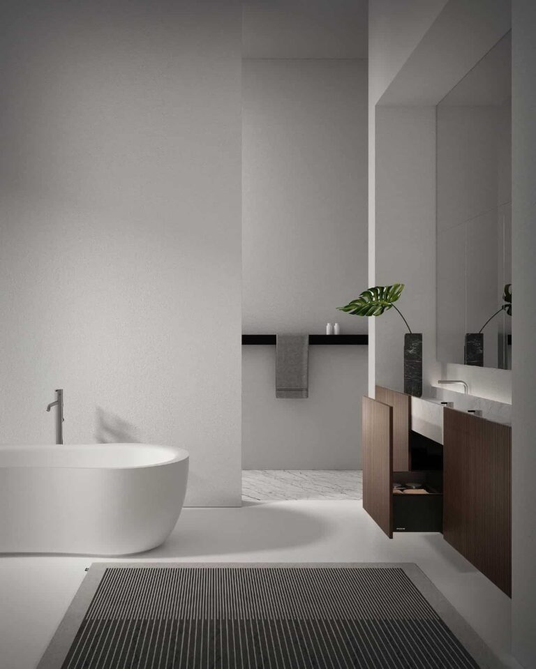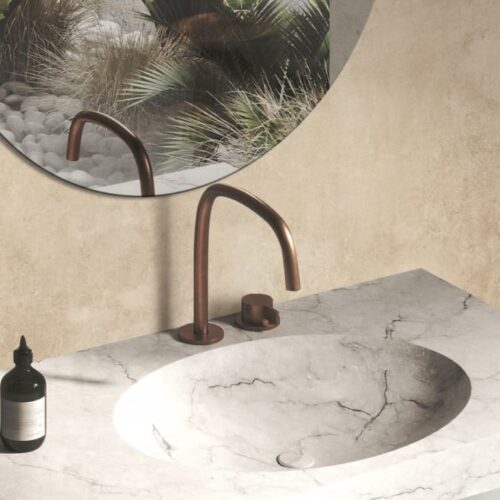 También se pueden introducir pinceladas de otros colores como el negro o dorado, así como otros materiales como el acero inoxidable o el latón en la grifería y accesorios, con el objetivo de crear un contraste interesante con las texturas naturales.